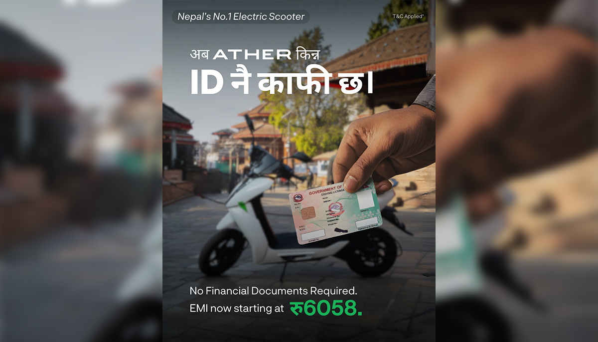 Ather has announced a new financing option in Nepal that allows customers to purchase its electric scooters using only a valid ID card, without the need for additional financial documents.