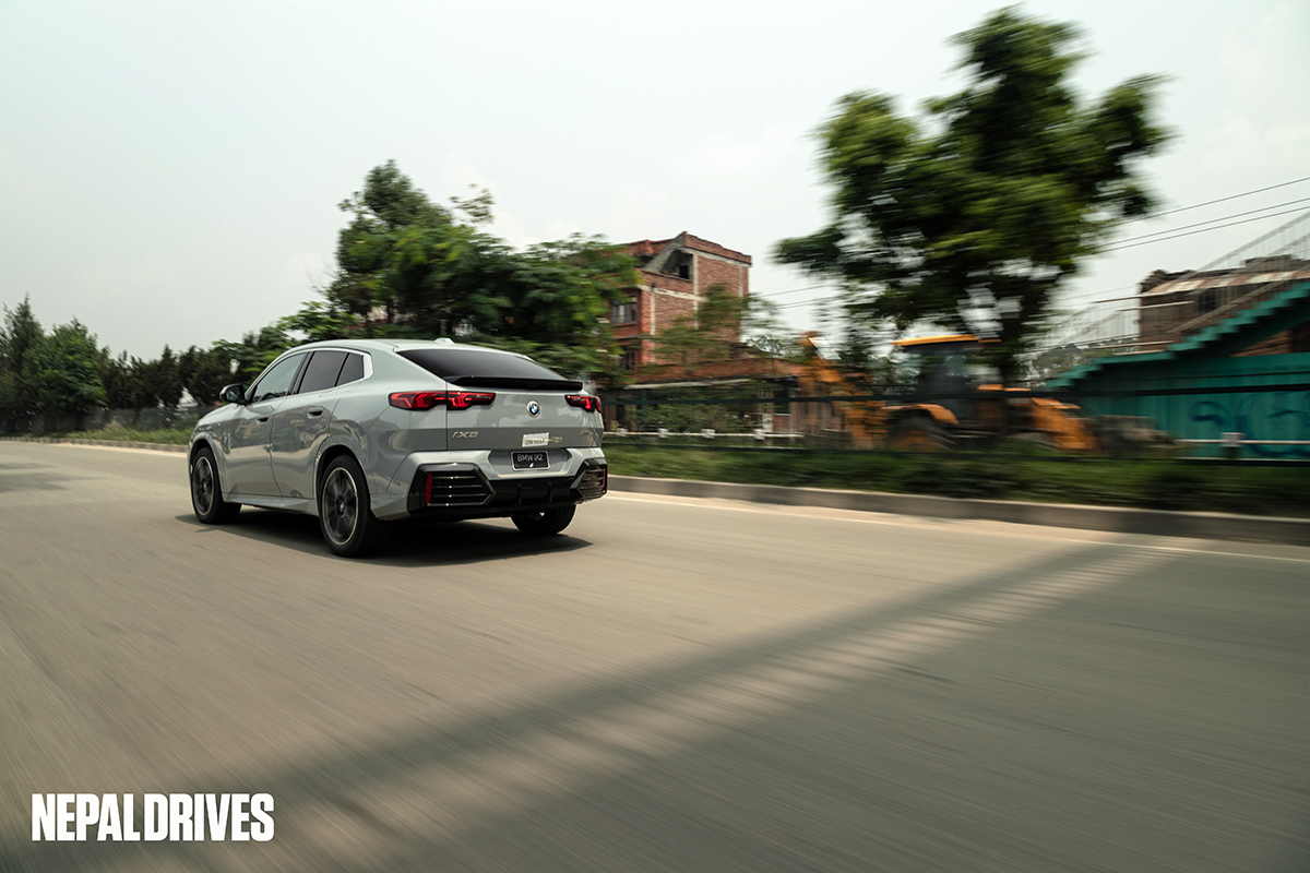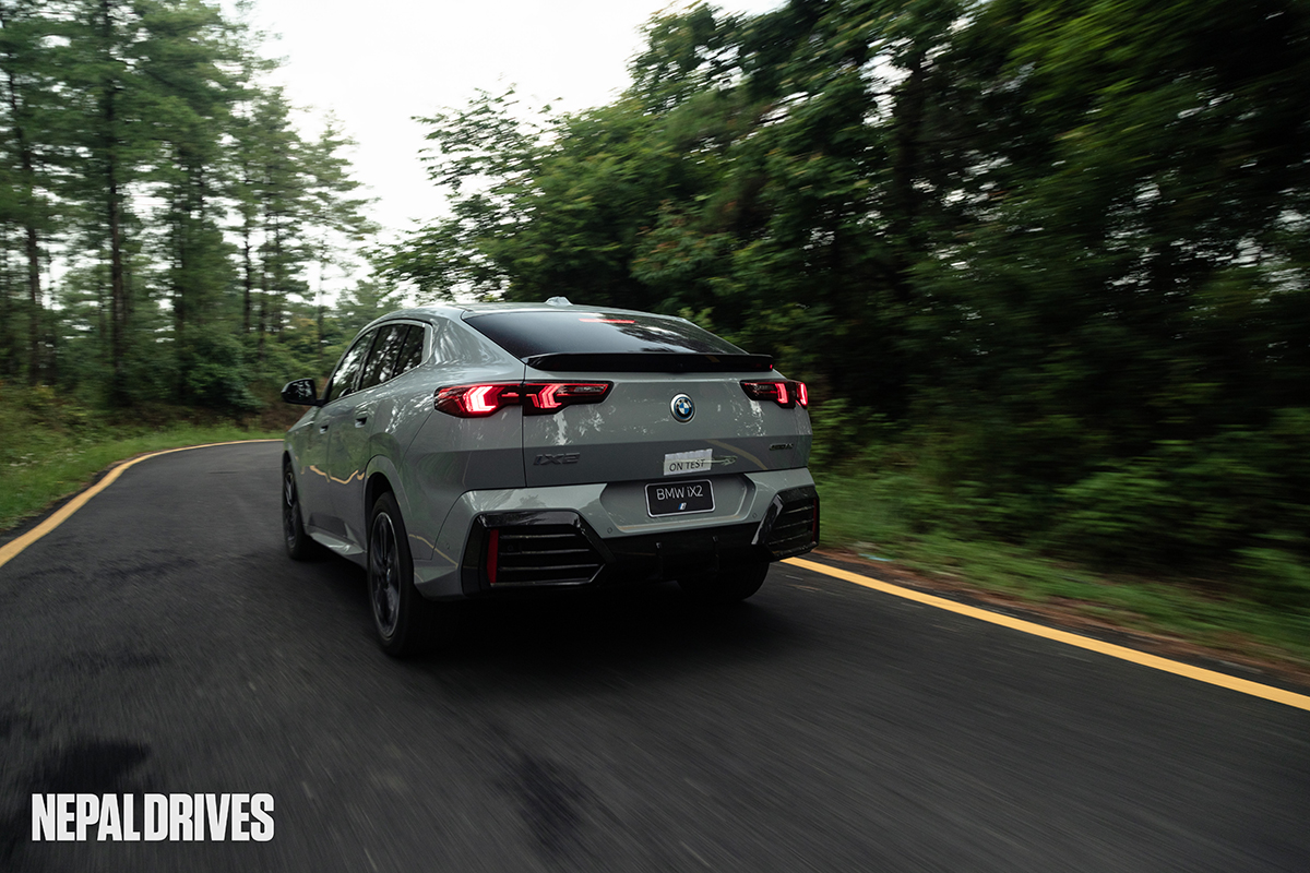 At the rear, the iX2 continues the muscular theme. The smooth, frameless rear windshield adds to the coupe appeal, but it comes without a wiper—a decision justified by manufacturers on aerodynamic grounds which we have never liked. Because, in real-world conditions, especially in cities like Kathmandu, it’s not the most practical choice. Not everyone is driving fast enough to rely on airflow to clear the glass.