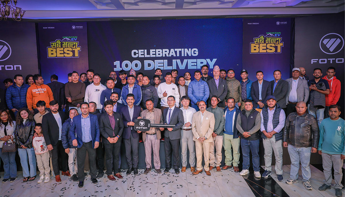 Foton Nepal has launched the Mountain EV, an electric passenger van suited for our terrain, priced at Rs 57.49 lakh for the 15-seater version and Rs 58.99 Lakh for the 14-seater version. During the launch, the company also delivered the first 100 units of the vehicle.