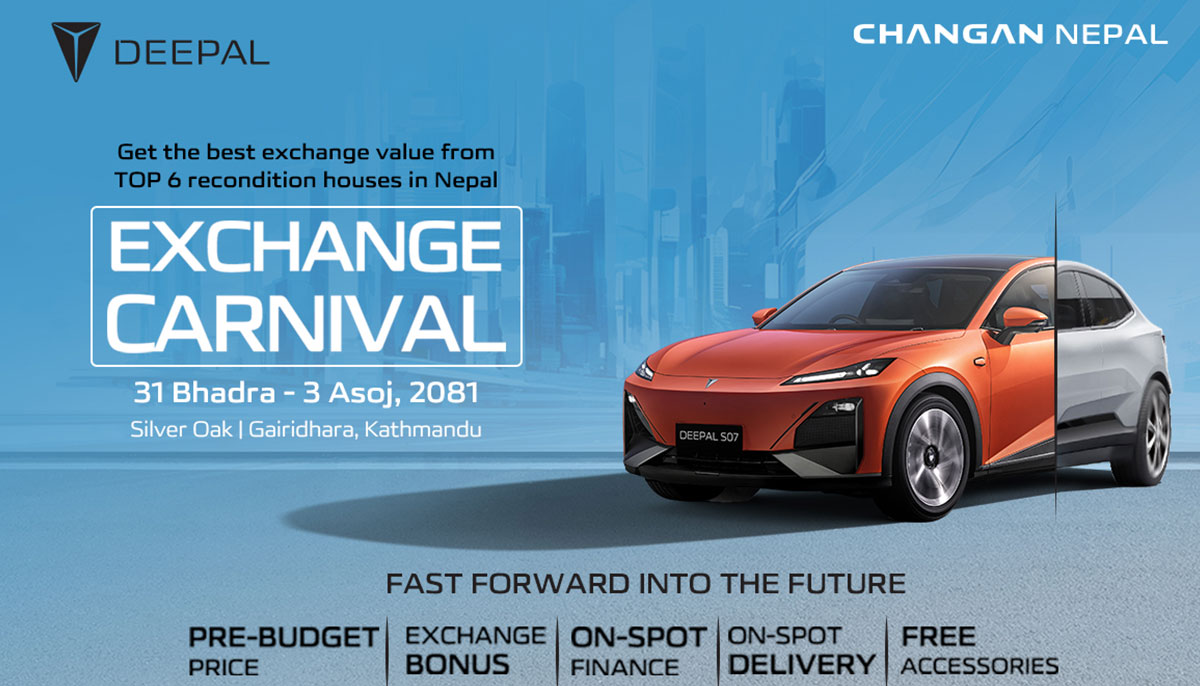 MAW Vriddhi Autocorp, the official distributor for Changan and Deepal in Nepal, is hosting the Deepal Exchange Carnival at Silver Oak, Naxal, Kathmandu, until the 3rd of Asoj (September 19).