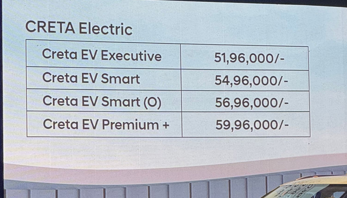 The Creta EV starts at Rs. 51,96,000, while the locally assembled Creta ICE is priced from Rs. 53,96,000 onwards. The ICE model sees a price reduction of up to Rs. 9 lakh compared to the imported 2025 versions.