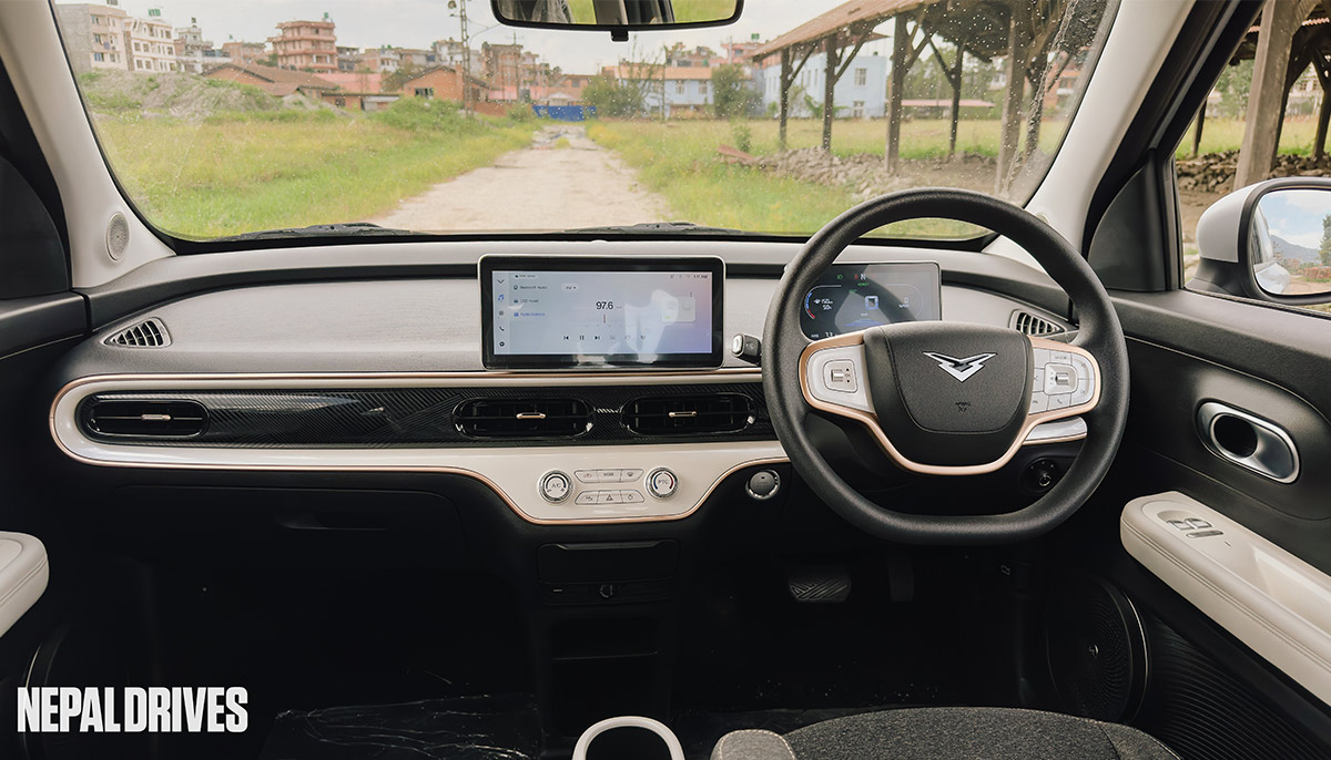 The compact dimensions come in handy inside the city. The narrow roads can be navigated like slicing butter. It is effortless, plus the e-Qute 02 brings in a 360-degree camera to make this even easier. Driving through the narrow cobblestone paths of Kathmandu, Bhaktapur, and Lalitpur whilst dodging pedestrians and motorcyclists without breaking a sweat feels almost like an underrated superpower.