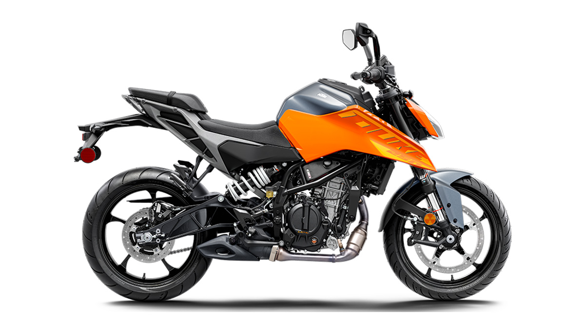 The KTM 250 Duke is powered by a 249.07 cc single-cylinder liquid cooled engine, producing 31 bhp of power and 25 Nm of torque. The engine is paired with a six-speed gearbox.