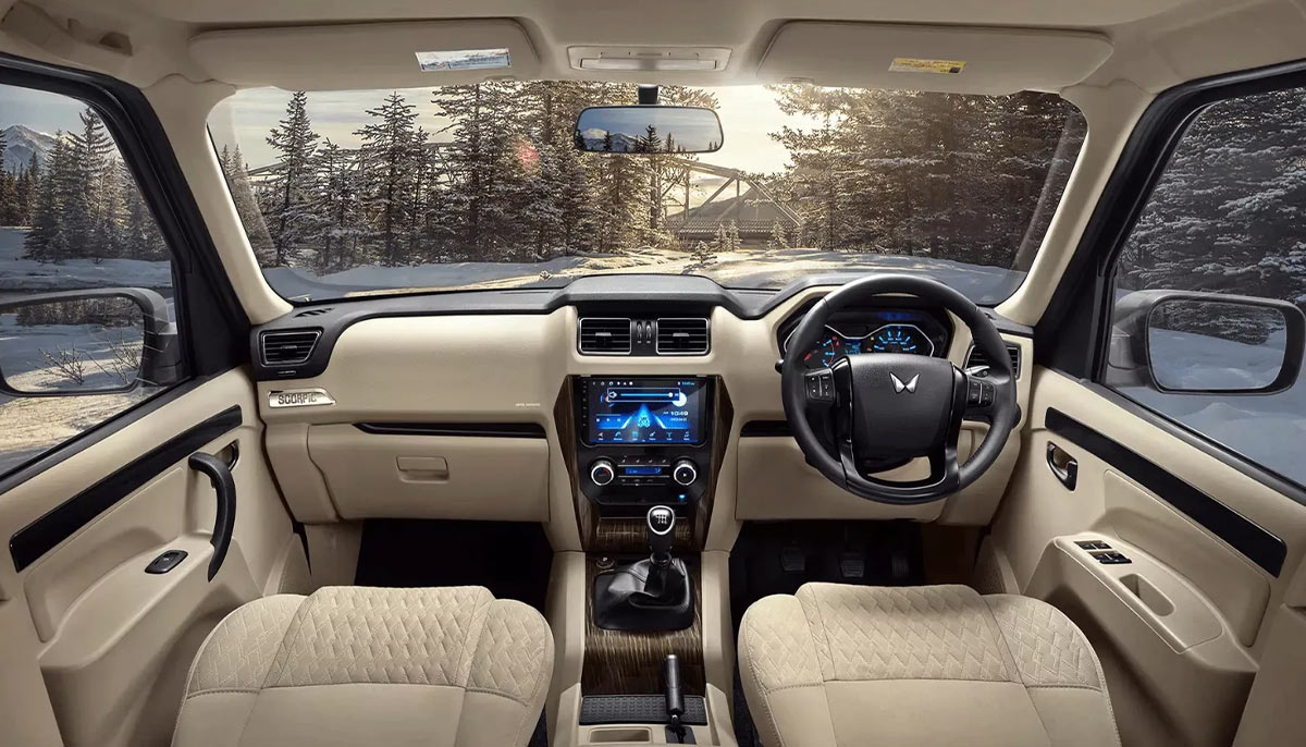 Mahindra Scorpio is equipped with a 15 cm (6-inch) touchscreen infotainment system that offers Bluetooth, AUX, USB connectivity, and GPS navigation, ensuring seamless access to media and directions. For comfort and convenience, it features dual-zone automatic climate control, power-adjustable front seats, and a sunroof, enhancing the overall driving experience. Design elements include projector headlamps with LED eyebrows, LED tail lamps, and 43.18 cm (17-inch) alloy wheels, contributing to its robust and modern appearance. Technological advancements encompass a latest-generation braking system, static bending technology in headlamps, and a voice assist system, ensuring enhanced safety and user-friendly operation.