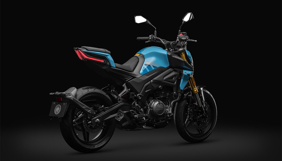 The Morbidelli F352 is paired with a 6-speed gearbox. It features a steel trellis frame, upside-down (USD) front forks, and a rear mono-shock suspension setup. The motorcycle comes with a digital instrument cluster, LED lighting system, and alloy wheels. Braking duties are handled by disc brakes at both ends, and it includes a dual-channel ABS system. The fuel tank capacity is around 16 liters, and the bike is designed for both urban commuting and highway riding.