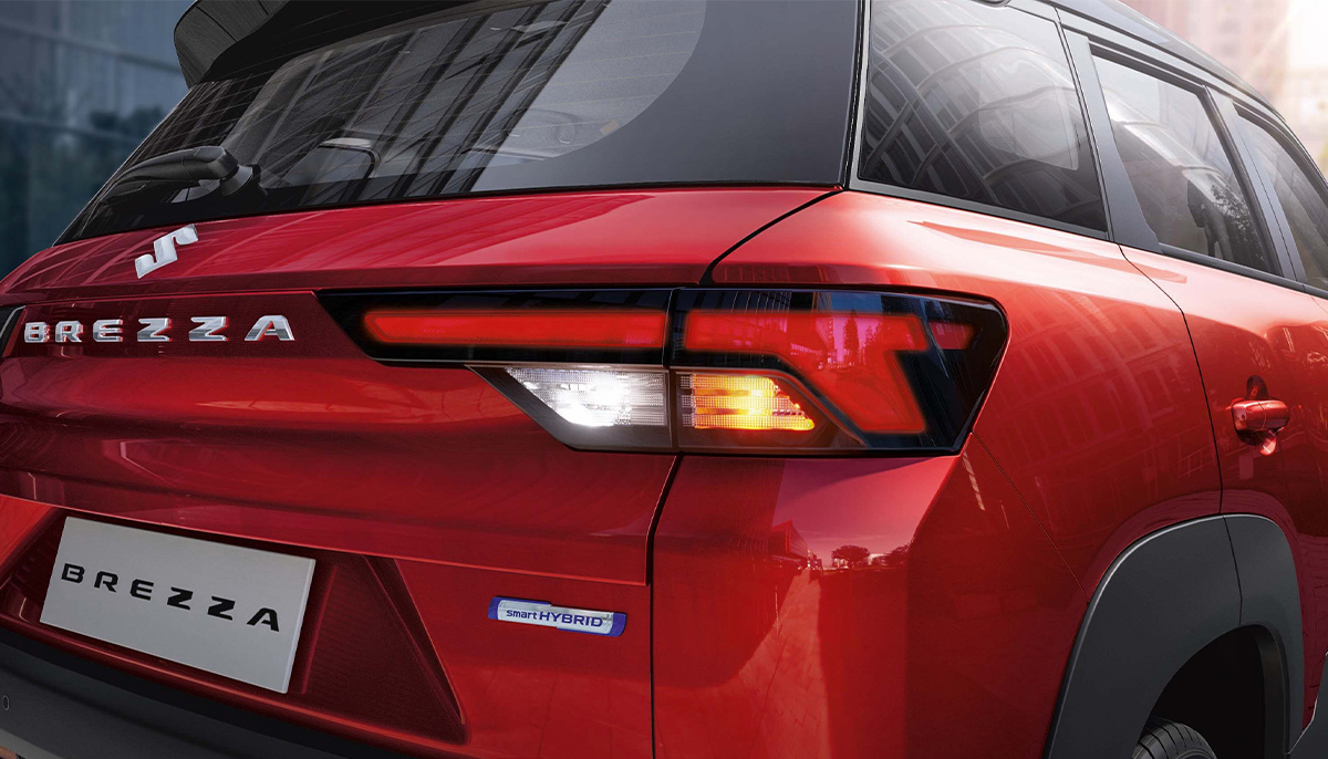 Suzuki Brezza features a 9-inch SmartPlay Pro+ infotainment system that supports Apple CarPlay and Android Auto, providing seamless smartphone integration. For comfort and convenience, it offers automatic climate control, cruise control, keyless entry with push-button start, and a height-adjustable driver's seat. Design elements include LED projector headlamps, dual-tone body color options, roof rails, and precision-cut alloy wheels. Technological features encompass a rearview camera, automatic headlamps, rain-sensing wipers, and a multi-information display. The Brezza is powered by a 1.5L K15B petrol engine with Smart Hybrid technology. The suspension system consists of a front MacPherson strut and a rear torsion beam, while the braking setup includes front disc brakes and rear drum brakes. The Brezza rides on 16-inch alloy wheels fitted with 215/60 R16 tires.