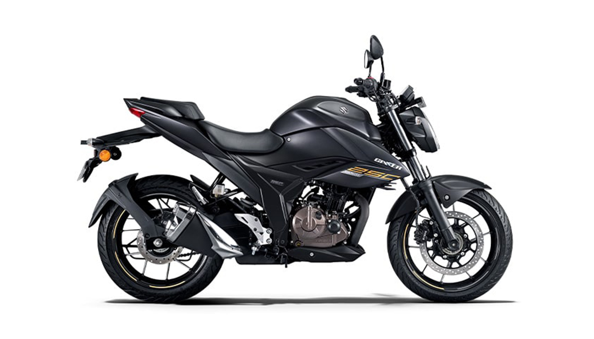 The Suzuki Gixxer 250 is powered by a 249 cc single-cylinder air cooled FI engine, producing 26 bhp of power and 22.6 Nm of torque. It features a 6-speed gearbox.