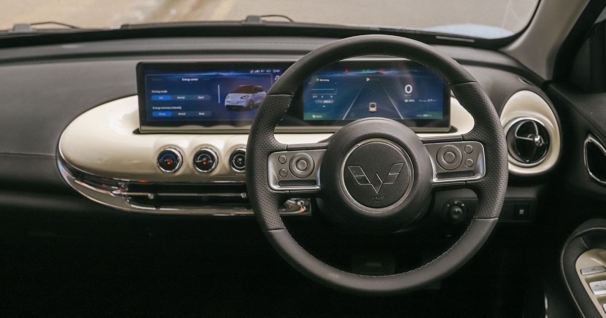 Overall, the interior is decent. It is a mix of glossy ceramic glaze texture and soft synthetic leather, which feels nice. The leather-covered steering wheel houses buttons for various functions, including cruise control and media control, alongside wiper and indicator controls. Behind it, a full-color 10.25-inch TFT-connected display serves as the digital instrument cluster, paired with another 10.25-inch infotainment display for navigation and media.
